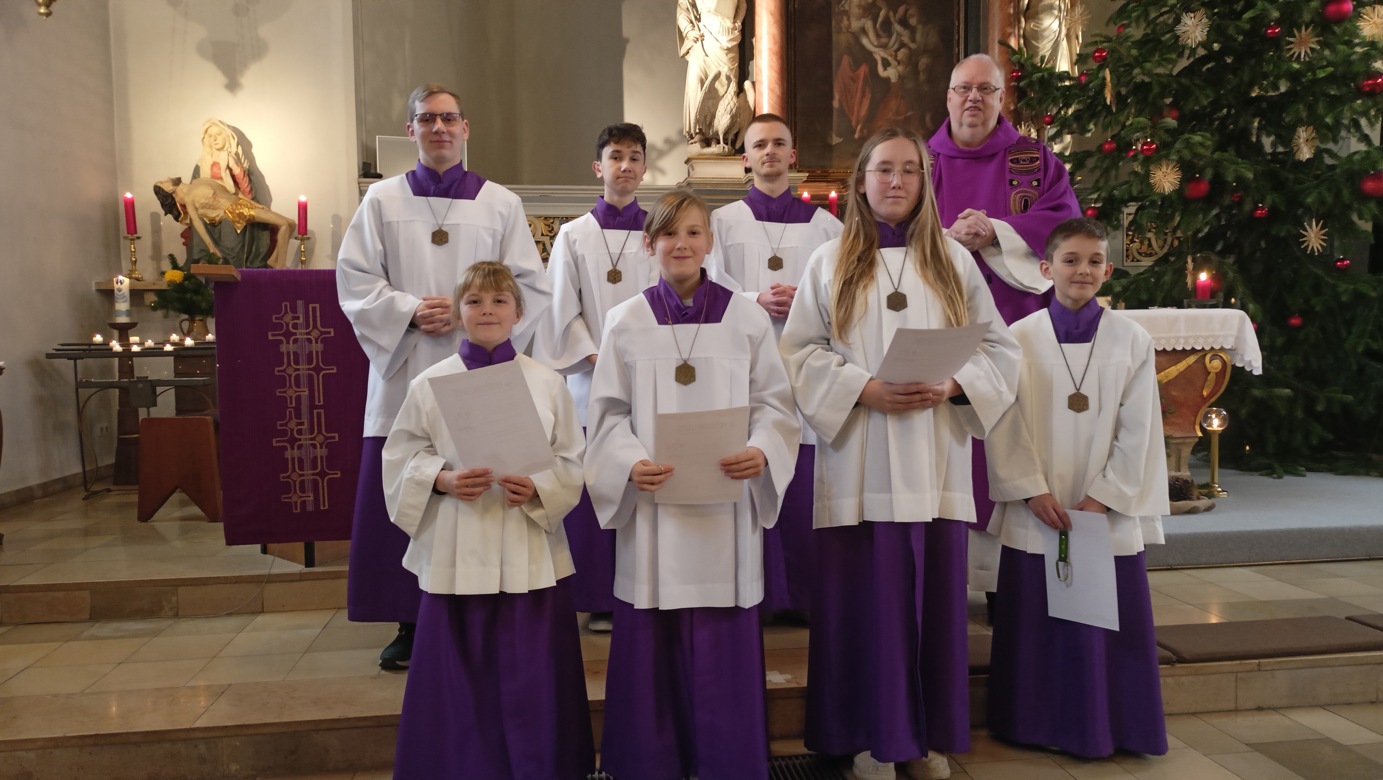 Ich denke besser lässt sich die Gemeinschaft der Messdiener nicht erklären. Sie sind für einander da, unterstützen sich und arbeiten Hand in Hand. Frau Bothe, sie leitet seit sehr vielen Jahren die Messdiener in Vienenburg an, war mächtig stolz, die neuen Ministranten offiziell begrüßen zu können. Sie war es, die in den letzten Wochen „die Neuen“ vorbereitet hat. Und da Gemeinschaft auch bedeutet, niemanden allein zu lassen, war es für die großen Messdiener Ehrensache, die Minis in der Gruppe zu begrüßen und sie während Ihres ersten Dienstes zu unterstützen.