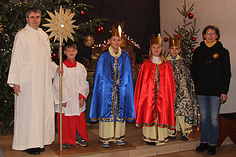 Von Helmut Hohaus - Während einer Liturgischen Feier in der katholischen Pfarrkirche wurden die Kinder durch Barbara Bothe und Gabriele Kronemann ausgesandt. In der Feier wurden die Aufkleber und die Kreide geweiht. Die Sternsinger brachten dann den Segen „20*C+M+B+26“ an die Eingangstür der Kirche, was „Christus Mansionem Benedicat“ bedeutet und „Christus segne dieses Haus“ heißt. Es besucht in diesem Jahr nur eine Gruppe von der katholischen Kirchengemeinde „Heilige Familie“ die Familien und andere Sammelstationen. Dadurch werden keine Hausbesuche möglich sein, es stehen aber Segensumschläge zur Verfügung.