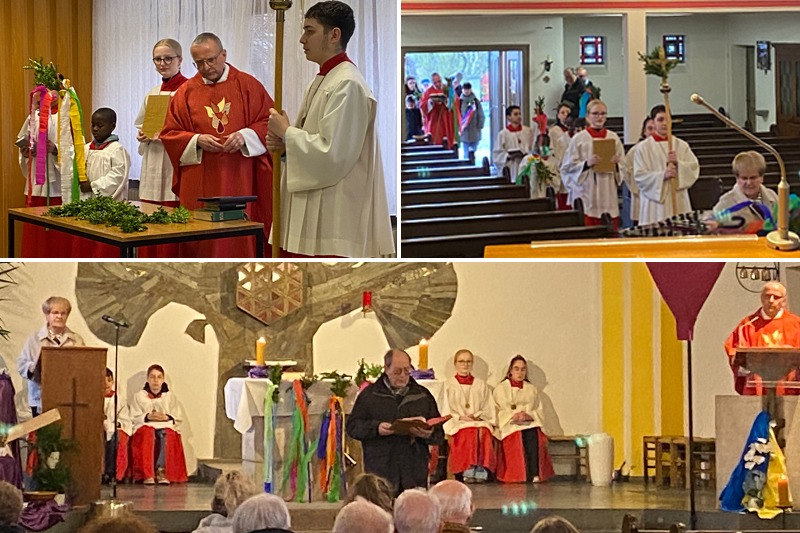 Von Beata Bednarek - In vielen Kirchen der Katholischen Kirche Nordharz wurde in den Gottesdiensten am Palmsonntag und am Vorabend an den Einzug Jesu nach Jerusalem erinnert. Die Vorabendmesse in St. Konrad begann mit einer Versammlung im Pater-Christelbach-Haus. Dort kamen viele Gemeindemitglieder, zahlreiche Messdiener sowie Pastor Ulrich Schmalstieg zusammen. Zu Beginn wurden die Palmzweige feierlich mit Weihwasser gesegnet.